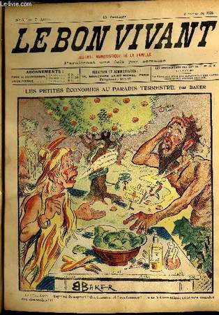 Illustrations plein page : Les petites économies au paradis terrestre par BAKER ; Compensation ; Echos par HENRIOT ; Oh, ces taxi par TYBALT ; Les dents par HEMARD ; L'imagination de M.Balaruc par G.EDWARD ; Juste indignation par MORISS ; L'appareil de la justice, B.A.G.D.G. par SELLIER ; Pendant les vacances par MARCEL CAPY (gravure couleurs) Classification Dewey : 70.441-Journaux satiriques anciens