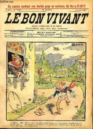 Fayard frères. 13 octobre 1907. In-12. Broché. Bon état, Couv. convenable, Dos satisfaisant, Intérieur frais. 16 pages environ illustrées de gravures noir et blanc. Premier plat de couverture illustré d'une gravures couleurs par Baker. Double pages en couleurs par Elliot.. . . . Classification Dewey : 70.441-Journaux satiriques anciens