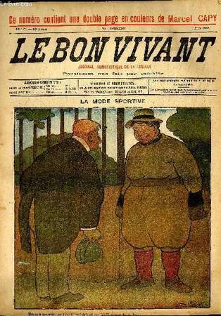 Illustrations pleine page : La mode sportive par ALEX ; Echos par HENRIOT ; Une réforme qui s'imposé par MORISS ; La révolutionaire, ou comme ils sont beaucoup par RADIGUET ; Pick et Poum par MARCEL CAPY (gravure double pages) ; Repos hebdomadaire par HELLE ; Conseils du docteur par VIRIEZ Classification Dewey : 70.441-Journaux satiriques anciens