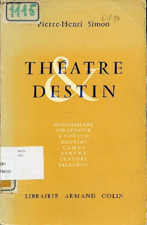 Montherlant, Giraudoux, Anouilh, Mauriac, Camus, Sartre, Claudel, Salacrou. Classification Dewey : 792-Théâtre