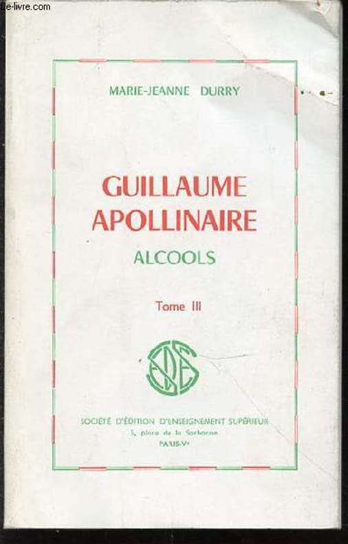 Paris, éd. Société d'Edition d'Enseignement Supérieur, 1968, in-12, cartonnage souple à rabats éd., 264 pp., index des noms de personnes, index des références aux pièces d'Alccols, table des matières, Très bonne étude sur les poémes du livre de Guillaume Apollinaire "Alcools". Le tome 2 seul sur les trois parus. Très bon état