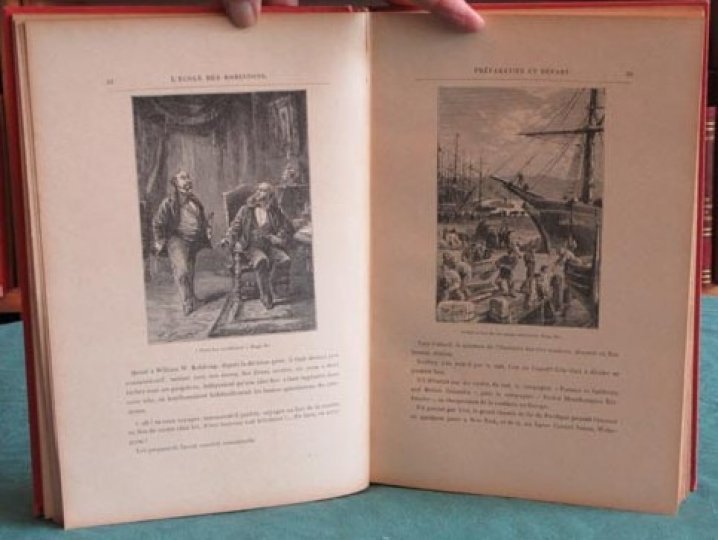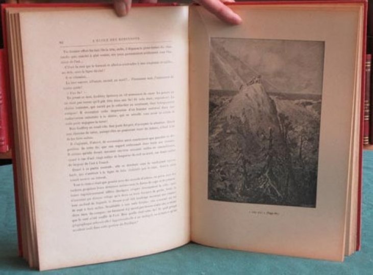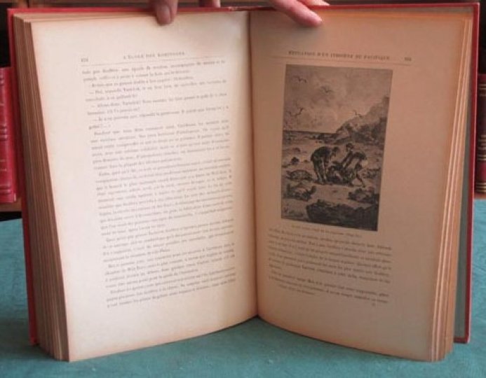 Les Voyages Extraordinaires. Les Mondes connus et inconnus. Illustrations par L. Benett.Paris, Librairie Hachette - Collection Hetzel - 1940 - 199 pages.Cartonnage Hachette rose aux Feuilles d'acanthe, 2e type. Gouttière régulière. Pas de rousseur. Très bon état. Format in-4°(27x19).