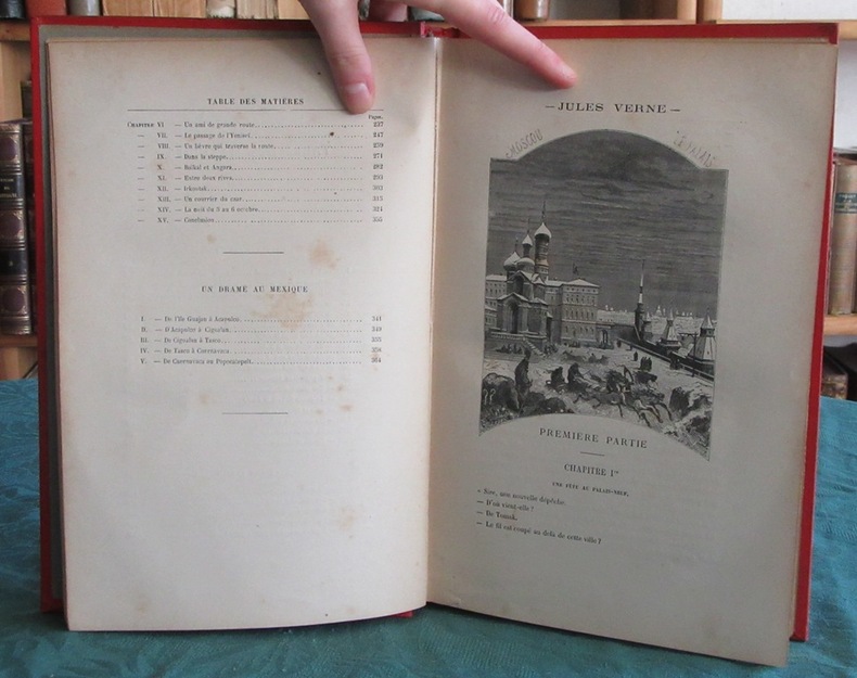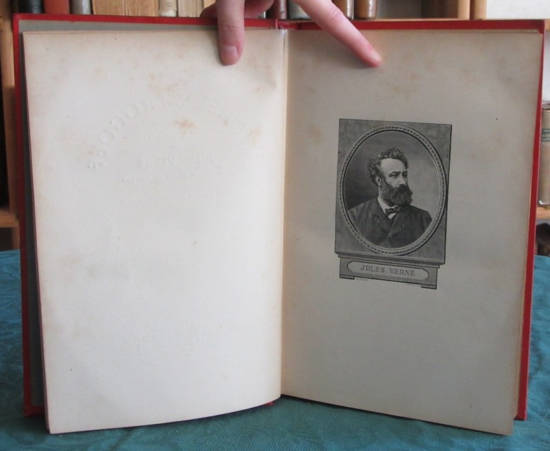Les Voyages Extraordinaires. Dessins de J. Férat, gravés par Ch. Barbant. 8 hors texte en couleurs.Le portrait de Jules Verne après la page de titre.Paris, Bibliothèque d'Éducation et de Récréation J. Hetzel et Cie. - 368 pages - non daté (vers 1903-1904). Imprimé par Belin. Reliure Engel.Cartonnage polychrome Hetzel, au globe doré. Dos au phare. Plat inférieur du 4ème type Rosace indiquant JH. Tranches dorées. Gouttière régulière. Pas de rousseur. Très beaux ors. Parfait état. Format in-4°(28x19).