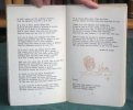Edition originale posthume réimposée au format in-4° Tellière. Tirage limité à 1600 exemplaires, un des 100 sur pur fil Lafuma Navarre, celui de René MILLAUD. Bel exemplaire de cet ouvrage écrit par ce membre de l'école fantaisiste qu'il a fondée avec CARCO et VERANE. Souvent vu au "Lapin Agile" il a collaboré à de nombreuses revues littéraires (le Feu, Isis, le Divan). Ce recueil de poèmes a été rassemblé par son ami CARCO deux ans après sa mort.