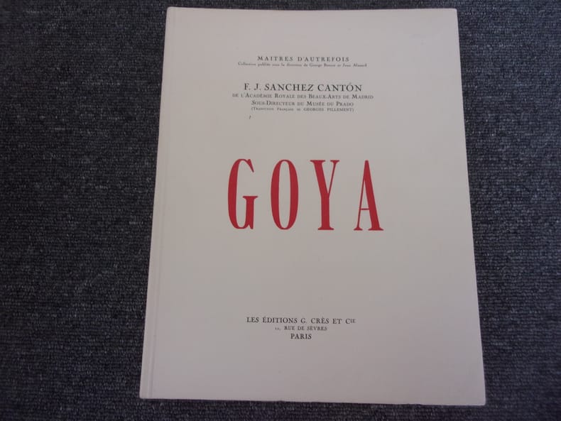 Los Proverbios de Goya. Publicala la Real Academia de Nobles Artes de San Fernando, Madrid, 1891. Album in-folio comprenant un titre et la suite complète de 18 eaux-fortes publiées sous le titre « Los Proverbios » mais dont le titre prévu par Goya était « Disparates » (Extravagances). Brochure verte de l’époque défraichie. 315 mm x 490 mm.