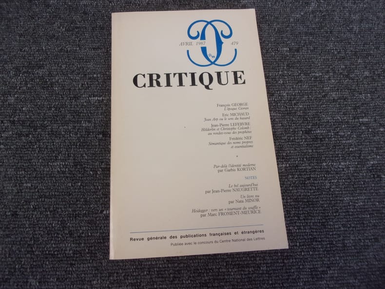 EDITIONS DE MINUIT. 1987. In-8. Broché. Bon état, Couv. convenable, Dos satisfaisant, Intérieur frais. Paginé de 268 à 359.. . . . Classification Dewey : 100-PHILOSOPHIE ET DISCIPLINES CONNEXES