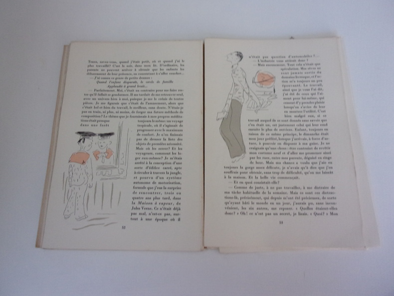 Paris: Roger Dacosta pour le Laboratoire de l'Hépatol., s. d. [1935] pet.in-4 en ff. sous chemise, [4]-80 pages. Couverture illustrée, dos avec qq pliures, étui avec usures, sinon bon état." Les cinq plaisirs": Coelio ou les Plaisirs de la jeunesse. Ambroise ou les Plaisirs de la campagne. Jacob ou les Plaisirs de la famille et de l'amour. Carlos ou les Plaisirs des beaux-arts.