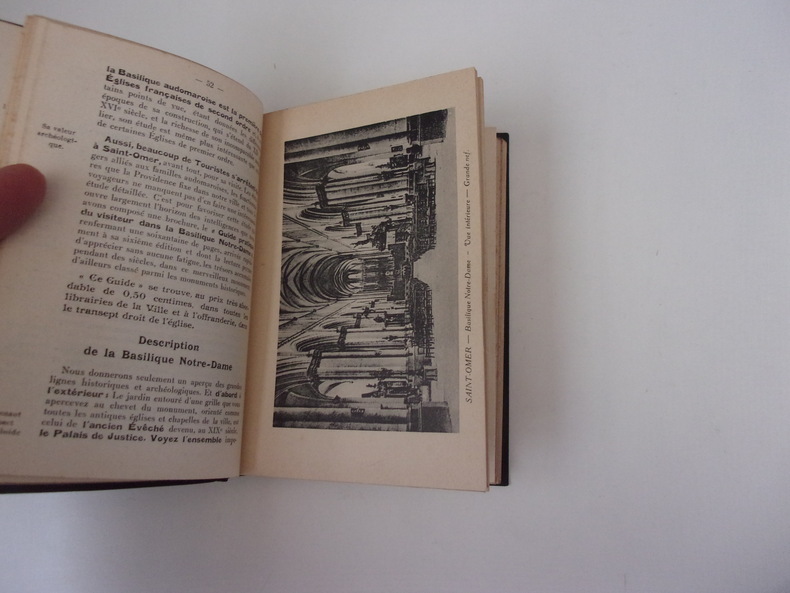 "1919. Saint-Omer et Boulogne sur Mer Imprimerie Loiez et Imprimerie P. Gaultier 1919 2 ème ed. dite Edition de la « Victoire » - Cartonné percaline rouge 11 5 cm x 16 cm 304 pages bien complet du plan et de la carte nombreuses ills in-texte publicités - Texte de l'Abbé Augustin Dusautoir - Etat d'usage - On joint une photo noir & blanc sombre 9 5 cm x 12 cm de la rue François ? avec un arc « L'Industrie de la Lingerie"""