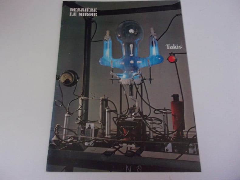 Paris, Maeght éditeur, 1981. In-folio (380 x 280 mm) en feuilles, 28 pages. DLM édité en novembre 1981 pour la première exposition de TAKIS à la Galerie Maeght : 23 sculptures : signals, murs magnétiques, cadrans, télélumières. Texte de Dominique Viéville "Dédale et Icare". 1 LITHOGRAPHIE ORIGINALE EN COULEURS en double page. 15 reproductions dont 5 en couleurs et 3 en double page. Tirage original.