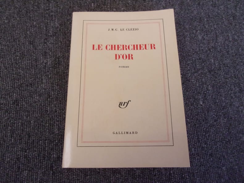 Inspirée par l'aventure du grand-père paternel de l'auteur, Léon Le Clézio, l'histoire du Chercheur d'or a pour cadre les îles Maurice et Rodrigues. Chassés de leur domaine du Boucan par la faillite et un cyclone, le narrateur, Alexis L'Étang, n'a plus qu'un désir : réaliser le rêve de son père en retrouvant le trésor d'un corsaire caché à l'île Rodrigues, évoquant l'achipel de Saint-Brandon, « un paradis sur terre » où les pirates venaient se réfugier pour mourir au XVIIIe siècle. « Le Chercheur d'or est un roman d'aventure et d'initiation qui s'apparente à L'Île au trésor de Stevenson où Jim, le héros, prend la mer pour découvrir un trésor enfoui sur une île. L'initiation commence par la rupture avec l'univers de l'enfance (...) et convoque plusieurs mythes littéraires, dont celui de Paul et Virginie ou de Robinson Crusoe, (...) en quête d'une vérité spirituelle et à une harmonie intérieure devant la beauté du monde. » (B. Chahine, Dictionnaire Le Clézio) « La littérature est une forme d'aventure, dont on ne connaît ni la fin ni l'issue mais que l'on peut prolonger, faire déraper, en écrivant. (...). Mon grand-père, le trésor, il ne l'a jamais trouvé, il l'a dit dans une des lettres, mais il a tout remis dans l'état où c'était pour que quelqu'un d'autre prenne la relève. C'était un rêveur, mais un rêveur minutieux, en laissant un plan très détaillé d'un monde qui n'existe pas » (entretien avec Augustin Trapenard, 21 cm, 2018). Légère trace d'insolation en marge haute des premiers feuillets (sur 3 mm).