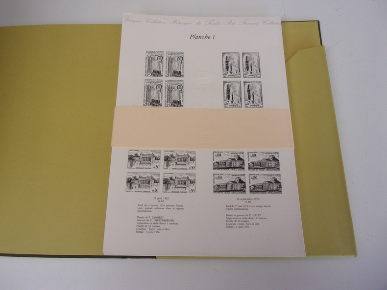 Paris Musée de la Poste, 1988-1990 1988 in 4 (30,5 x 22) 4 volumes reliures chemises toilées vertes de l'éditeur sous étuis assortis, Tome 1: 119 pages, nombreuses illustrations, et 29 planches volantes illustrées encartées dans la reliure (planches N°1 à 29). Tome 2: 87 pages, nombreuses illustrations, et 30 planches volantes illustrées encartées dans la reliure (planches N°1 à 30).Tome 3: 124 pages, nombreuses illustrations, et 34 planches volantes illustrées encartées dans la reliure (planches N°1 à 34).Tome 4: 159 pages, nombreuses illustrations, et 29 planches volantes illustrées encartées dans la reliure (planches N°1 à 29). Edition originale. Tirage limité, exemplaires numérotés. Lettres du monde entier. Timbres-postes de France. Très bel ensemble