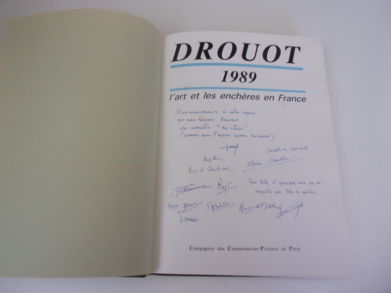 COMPAGNIE DES COMMISSAIRES-PRISEURS DE PARIS. 1989. In-4. Relié toilé. Bon état, Tâchée, Dos satisfaisant, Intérieur frais. 336 Pages. Nombreuses photos en couleur dans et hors texte. Signet conservé.. . . . Classification Dewey : 745.1-Antiquités