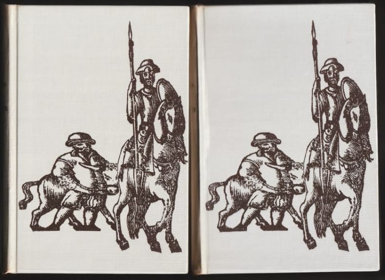 Michel de l'ormeraie 1976 in4. 1976. Relié. L'ingénieux Hidalgo Don Quichotte de la Manche + Pablo de Ségovie - illustré par Daniel Vierge - réédition de 1976 - tome 1 à 5 complet + Pablo de Ségovie en un volume --- ensemble numoté (fin du livre Pablo de Ségovie): n°347 tiré sur velin ivoire - reproduction des premiers tirages parus en 1909 et 1902