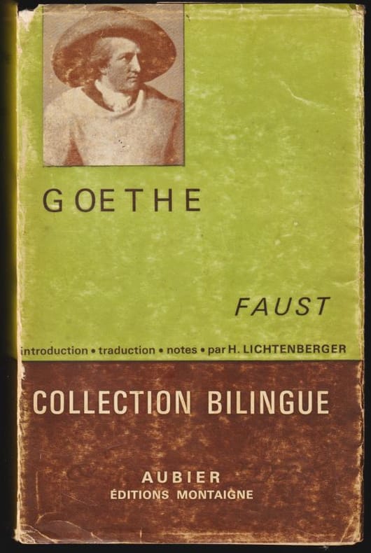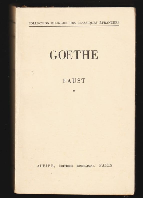 Montaigne, Fernand Aubier bilingue 1935 Paris, éditions Montaigne, Fernand Aubier éditeur, collection bilingue des Classiques étrangers, sans date (vers 1935). Édition bilingue avec le texte original en allemand et la traduction française en regard. Traduit de l'allemand et avec une introduction et des notes par Henri Lichtenberger. In-12 broché de XCVIII - 312 - XXVII pp. Jaquette illustrée. Jaquette un peu usagée, quelques pages mal coupées. Bon état général, sans annotations ni soulignements.