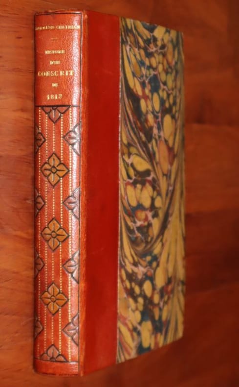 1 volume in-8° relié demi-chagrin marron à coins, dos à nerfs, auteur et titre dorés, fleuron doré en décor, tête dorée, couverture et dos conservés, 246 p. + 12 illustrations en couleurs hors-texte. Tirage à 3300 exemplaires numérotés sur vélin Aussedat (ex. N°2601). Très bel état. Tampon d'inventaire de Bibliothèque privée en page de garde et faux-titre et note manuscrite en partie supérieure de la couverture.