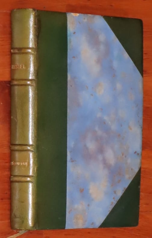 Librairie de La Revue française, Alexis Redier 1932 Paris, Librairie de La Revue française, Alexis Redier éditeur, collection "Le Paon blanc", sans date (1932). Édition illustrée, contenant 8 eaux-fortes hors texte dont une en frontispice, par André Fraye. Le tirage est limité à 1100 exemplaires, celui-ci un des 910 exemplaires numérotés sur vélin d'Arches. In-8 de 215 pp. Reliure demi chagrin vert à coins, dos à nerfs, titre doré. Couvertures et dos d'origine conservés. Dos pâli et charnières un peu marquées, sinon très bon état. Bel exemplaire, malgré les défauts signalés.