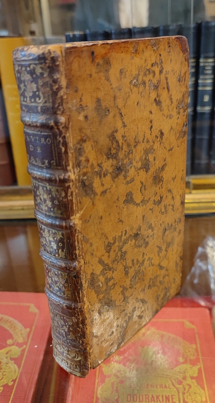 Paris, chez Debure l'Aîné, 1762 in-12 (17,3 x 10,5 cm), 24 et 407 pp., veau brun moucheté, dos à cinq nerfs orné, pièce rouge, tranches rouges (reliure de l'époque). Faux-titre dessiné et gravé par Huquier Fils, bandeau d'en-tête et lettre ornée