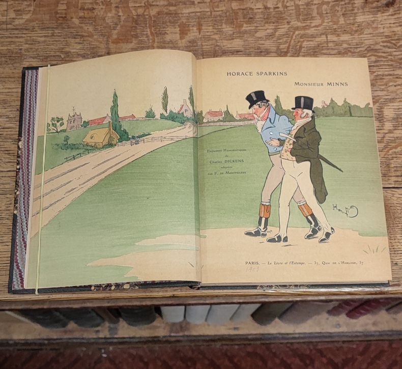 Le Livre et l'Estampe, 1903, grand in-8 (23,1 x 18 cm), 79 pp., reliure demi-maroquin vert foncé, coins, dos orné et mosaïqué, tête dorée, couverture et dos conservés. Edition tirée à 320 exemplaires, celui-ci un des 60 sur papier d'Arches (n°5), contenant un dessin en couleurs de H. de Montfrileux, ayant servi à l'illustration. (charnières épidermées).