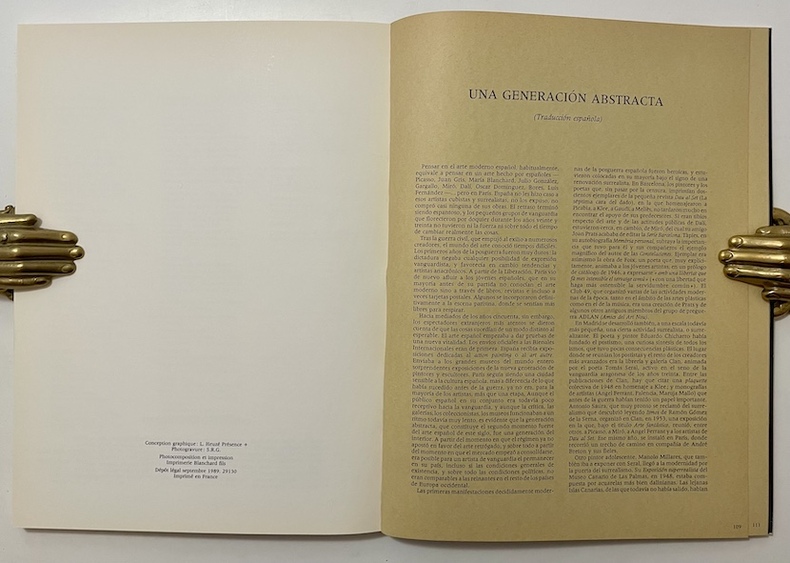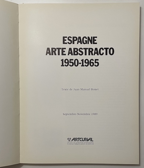 Édition originale de cet ouvrage rédigé en français, donnant à voir une sélection d'artistes espagnols du mouvement pictural abstrait. Critique d'art et poète espagnol, Juan Manuel Bonet revisite entre autre les oeuvres de Miguel Berrocal, Rafael Canogar, Eduardo Chillida, José Guerrero, Jorge Oteiza, Antonio Saura, Antoni Tàpies, Fernando Zobel...Nombreuses illustrations, parfois en couleurs. Traduction espagnole en fin d'ouvrage.Bon exemplaire malgré quelques minimes frottements à la couverture.