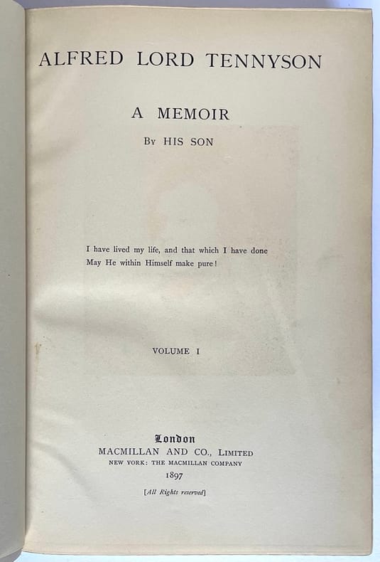 Édition originale dédiée à la reine Victoria.Cette biographie, faite par le fils d’Alfred Tennyson (1809-1892), reste la source d'information faisant autorité sur la vie du poète. Rédigée après la mort de ce dernier en 1892, et publiée cinq ans plus tard, elle visait à « prévenir toute biographie inexacte ». Elle repose sur une documentation riche, comprenant lettres, journaux et souvenirs personnels du poète et de son entourage. À sa mort, Tennyson avait laissé environ 40 000 lettres, dont plus des trois quarts ont été détruites par son fils et sa femme, conformément à ses souhaits. Néanmoins, celles sélectionnées et présentées ici offrent un aperçu fascinant de sa vie personnelle, avec un ton à la fois réservé et respectueux, évitant ainsi éloges ou critiques excessives.L’illustration comprend 23 planches, dont deux frontispices, et un fac-similé à pleine page.Superbe exemplaire en reliure de l’époque ou légèrement postérieure, conçue par le célèbre relieur anglais Joseph William Zaehnsdorf (1853-1930). Il était le fils de Joseph Zaehnsdorf (1816-1886), originaire de Budapest, qui avait appris son métier à Stuttgart et à Vienne, et qui avait ensuite traversé Zurich, Fribourg et Baden-Baden pour Londres, où il s'était installé en 1837, devenant l'un des relieurs commerciaux les plus réputés du quartier du « West End ». Joseph William, après trois ans d'études en France, puis un apprentissage chez un relieur à Cologne, le rejoignit à Londres et reprit l'entreprise quelques années avant sa mort. Il fut l’auteur d’un ouvrage de référence sur l’art de la reliure, publié en 1880.Exemplaire parfaitement conservé malgré quelques traces de frottements sur le bas de deux plats.
