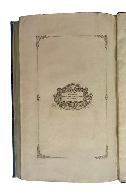 Paris : Charles Warée (impr. Schneider et Langrand) 1843 1 In-8, 220 x 140 Demi-percaline verte à la Bradel à large coins, dos lisse orné d’un fleuron doré, non rogné, couverture conservée (reliure vers 1860). frontispice., XXXI, 400 pp., couverture illustrée.