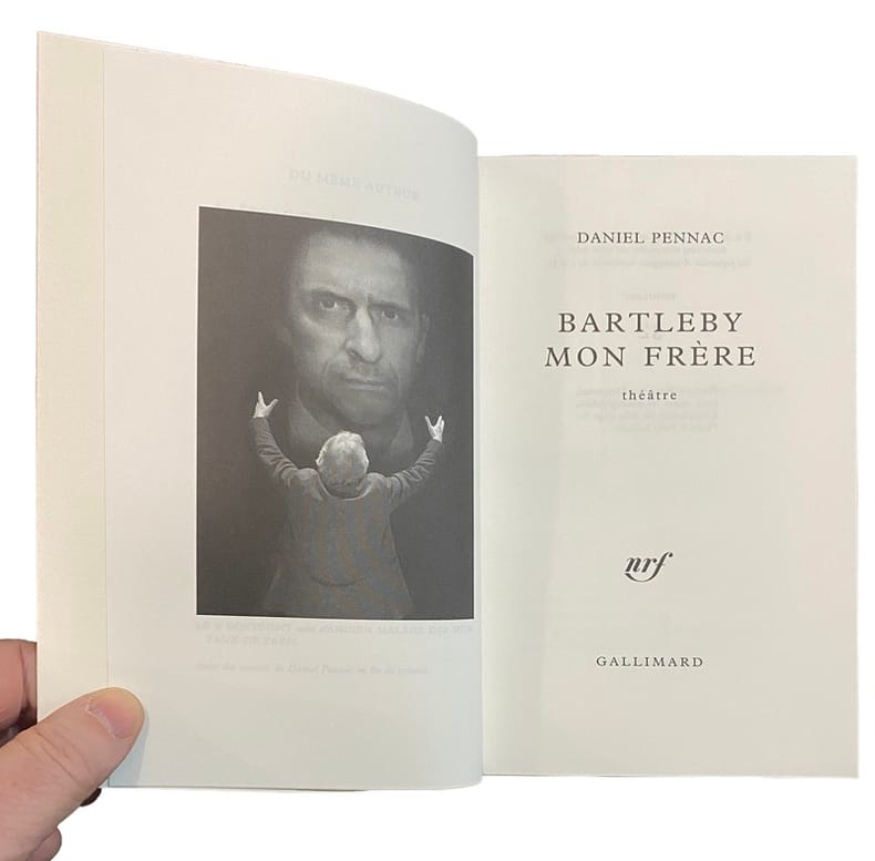 Édition originale de cette pièce de théâtre à travers laquelle Daniel Pennac nous amène à découvrir « les coulisses du théâtre, du cinéma et l’atelier d’un grand écrivain » (Gallimard). Il s’agit de l’adaptation théâtrale de son essai Mon frère.L’illustration comprend 6 photographies en noir de Francesca Mantovani et de Pako Ioffredo, reproduites dans le texte et à pleine page, montrant des scènes de la pièce.Un des 35 exemplaires sur vélin Rivoli des papeteries Arjowiggins, seul tirage sur grand papier.