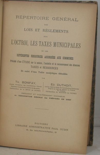 Poitiers, Librairie administrative Paul Oudin,( 1914). In-8 de VIII - 664 pages. Bon état intérieur. Demi-toile ocre, pièce de titre. Dos passé, salissures. Couvertures conservées.