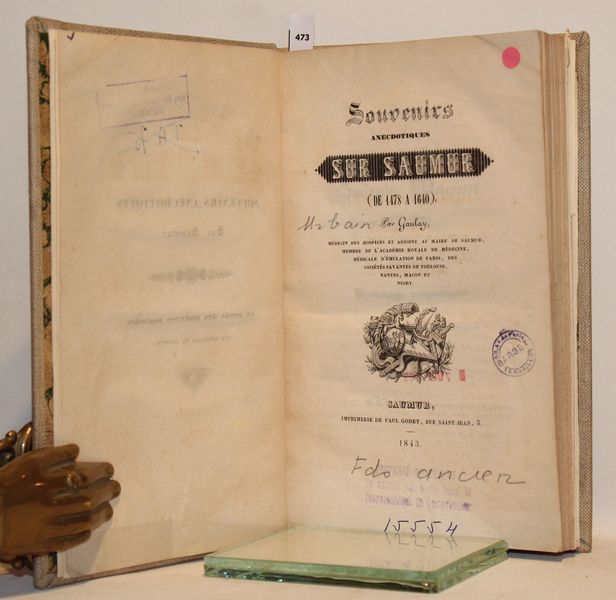 Saumur, Paul Godet, 1843. In-8 de [3 ff.], 277 pages, un feuillet de table et 3 planches hors-texte reliées in-fine. Bon état intérieur. Toile gris-clair, nombreux tampons de l'O.R.T.F., Radio-France.