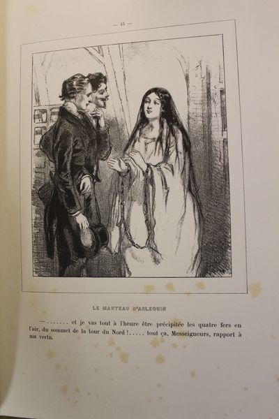 Paris, Paulin et Lechevalier, 1857. 355 g Petit in-8, demi chagrin bleu, dos à faux-nerfs, couvertures conservées, 248 pp., [2] ff.. Illustré de dessins de Gavarni gravés sur bois en réduction par Godefroy-Durand. Edition parue l'année de l'originale, non citée par les principales bibliographies. . (Catégories : Livres illustrés, Humour, )