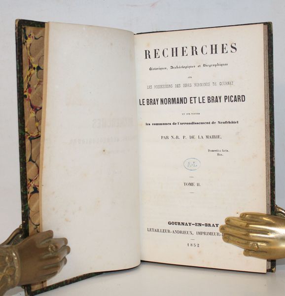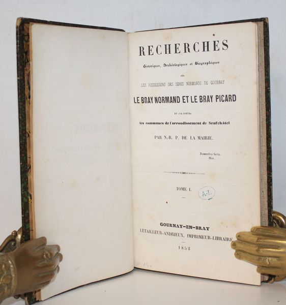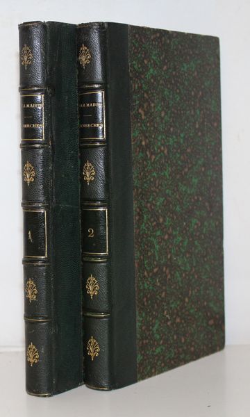 Gournay-en-Bray, letailleur-Andrieux, 1852. Deux volumes in-8 de 353 et 188 pages. Rousseurs. Beau demi-chagrin vert-foncé, dos à nerfs joliment orné de felurons et filets dorés, pièces de titre de maroquin vert très foncé. En très bon état.