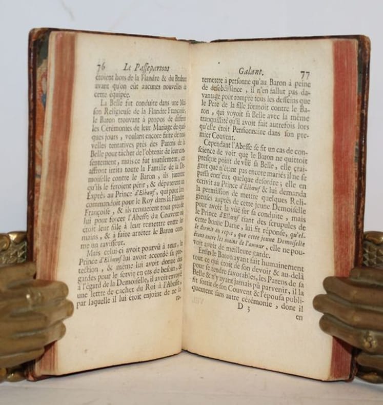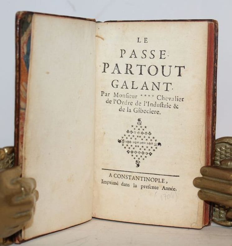A Constantinople, Imprimé la présente Année. (Circa 1704) In-16 de : 3 feuillets (titre, avertissement, table des Avantures) et 232 pages. Bon état intérieur malgré quelques pâles rousseurs. Plein veau havane du temps, dos lisse orné à la grotesque, pièce de titre de maroquin rouge, tranches rouges. Usures aux coiffes en tête et en pieds, aux coins et une charnière fendue.
