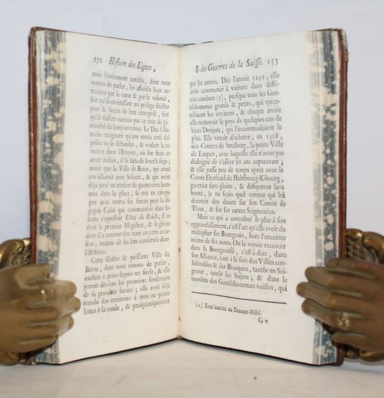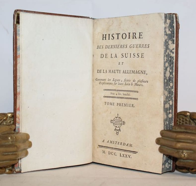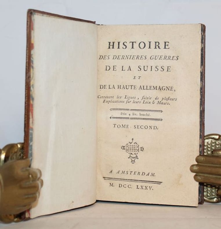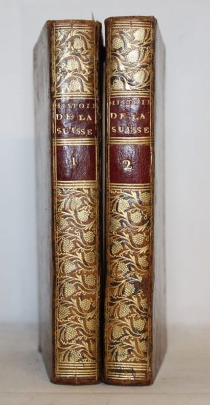A Amsterdam, 1775. Deux volumes in-12 de X pp. (préface), 338 et 329 pages. Les pages de titre sont légèrement teintées, le reste des ouvrages est en bon état. Pleine basane fauve d'époque, dos lisse richement orné d'un entrelacs de vignes et grappes de raisin et de filets dorés, pièces de titre et de tomaison rouge, tranches marbrées. Coiffe supérieure arasée au premier volume, petite usure au décor du dos du second volume, trois coins usés.