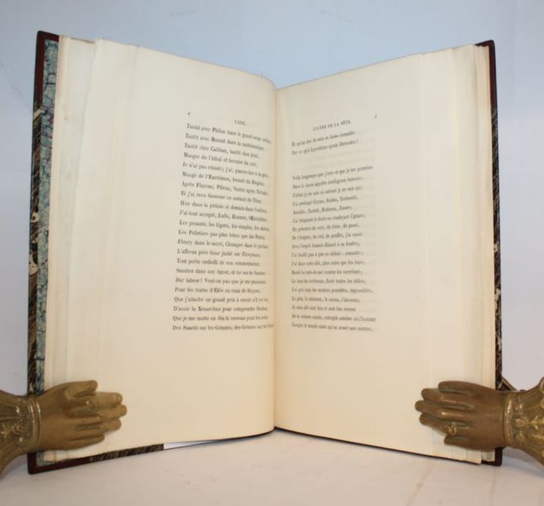Paris, Calmann Lévy, 1880. In-8. [5 ff., blanc, fx-titre et justification au verso, titre, poème" Mais tu brûles", second fx-titre], 171 pp. [2 ff., marque de l'éditeur, blanc]. Exemplaire à grandes marges sur Hollande (n°26 sur 40 exemplaires), parfait état intérieur. Demi-veau fauve à coins, dos plat orné de décors dorés et à froid, couvertures conservées, non coupé (léger frottement au mors supérieur).