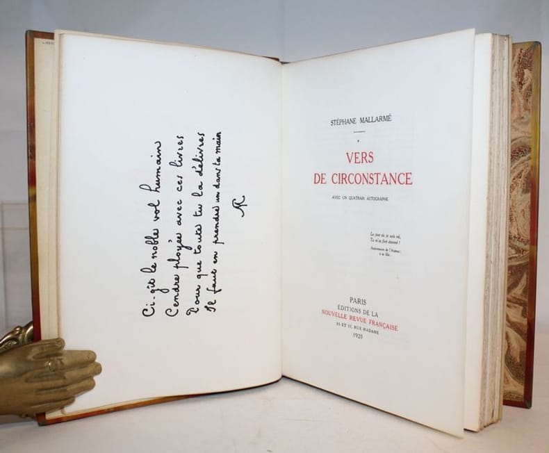 Paris, Editions de la Nouvelle Revue française, 1920. In-4 tellière de XII et 192 pages sur papier vergé pur fil. Avec un quatrain autographe en fac-similé. Edition originale. Un des 25 exemplaires numérotés de CI à CXXV. N°CIX. Excellent état intérieur . Demi-maroquin havane, filet or sur les plats, dos à cinq nerfs, titre or, tête dorée, couvertures et dos conservés. Reliure très bien exécutée par L. Bernard. Excellent état.