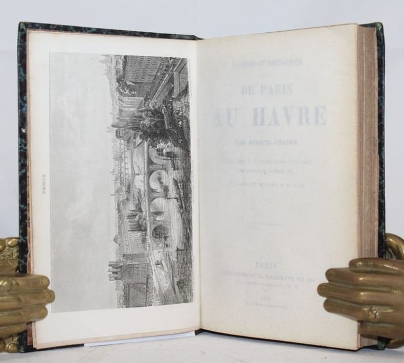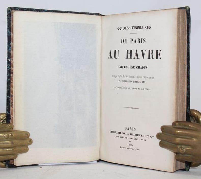 Paris, Hachette et Cie, 1855. In-12 de 283 pages. Cachet de colportage. Ouvrage illustré de 2 hors-texte et de 80 vignettes dessinées d'après nature par Morel-Fatio, Daubigny, etc.. Accompagné de 3 cartes et plans. Demi-chagrin vert, dos plat orné de filets dorés, bon état., excellent état malgré une très légère insolation du dos.