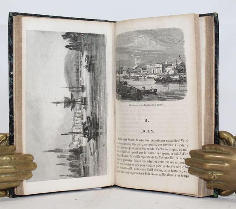 Paris, Ernest Bourdin, (1842). In-12, demi-veau vert, dos lisse orné (Rel. ép.).Vignettes in-texte, 12 planches hors-texte et 5 cartes.Rel. très frottée, charnières fendues. Petites rousseurs.