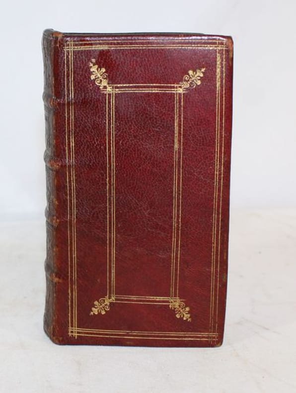 Apud Joannem Janssonium, Amsterdam, 1640. In-16 de (16)ff. dont le titre frontispice gravé et le beau portrait gravé de de l'auteur, 670 pages. Intérieur très frais. Plein maroquin rouge, dos à nerfs orné de caissons et fleurons dorés, triple filet doré d'encadrement sur les plats, de même au centre des plats avec des fleurons en écoinçons, tranches dorées. Reliure de l'époque (une charnière frottée).