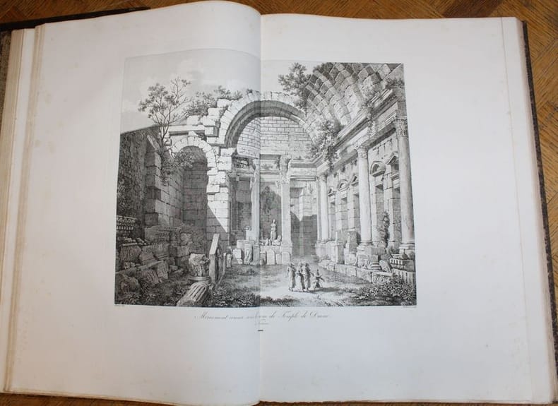 Paris, Didot l'aîné, 1816-1836. Deux volumes grand in-folio (59 x 43,5 cms). T.I : (3)ff. dont le titre et le frontispice, IV-94 pp., 116 planches; T.II : (3)ff., 52 pages, 143 planches. Grande fraicheur intérieure avec de rares rousseurs marginales. Demi-veau havane, dos à nerfs joliment orné de larges caissons dorés aux motifs floraux, pièce de titre et tomaison de maroquin vert. Reliure de l'époque. (restauration aux charnières).