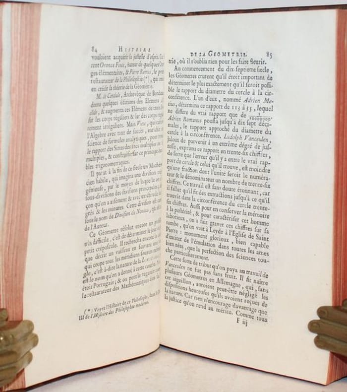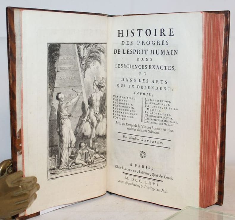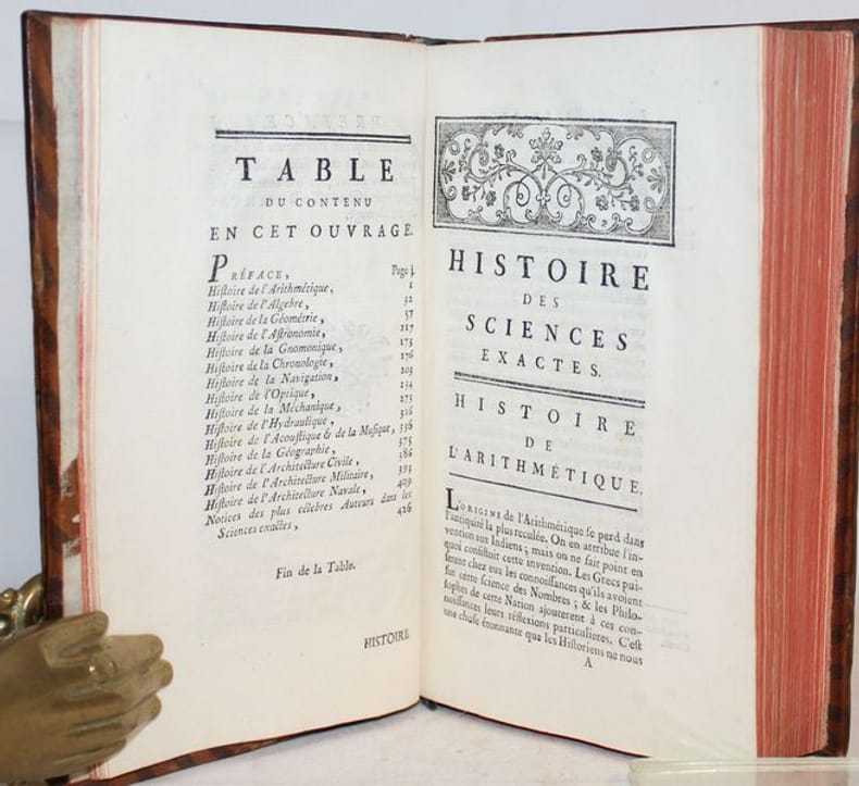 Edition originale de cette histoire des sciences exactes de l'époque classées par sujets. En fin une série de notices bio-bibliographiques des plus célèbres auteurs.