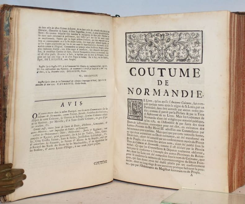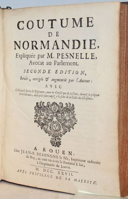 Seconde édition, revue et augmentée. Abrégé fort bien fait de Bérault et de Basnage (Première édition 1704). Pesnelle, avocat au Parlement, procureur du roi en la vicomté de Rouen, est né dans cette ville. Bon exemplaire malgré de petits défauts à la reliure. Frère II-372.