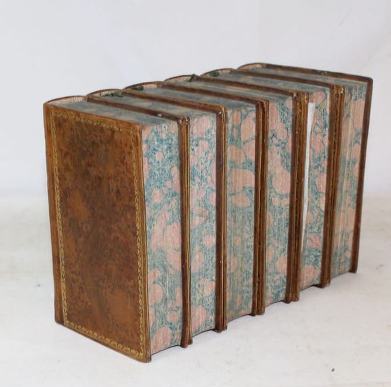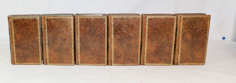 Paris - Strasbourg, Onfroy, Treuttel et Würtz, impr. De l’imprimerie de Didot jeune, à Paris 1815 6 volumes. In-18 13,5 x 8 cm. Reliures de l’époque basane havane marbrée, dos lisses ornés de petits fers encadrés de filets dorés, pièces de titre maroquin vert, plats encadrés d’un filet doré, LXXXVI-454-XXXVIII-456-CXXXVI-327-481-CXL-322-CCXVI-398 pp., 6-1-2-2-2 gravures.