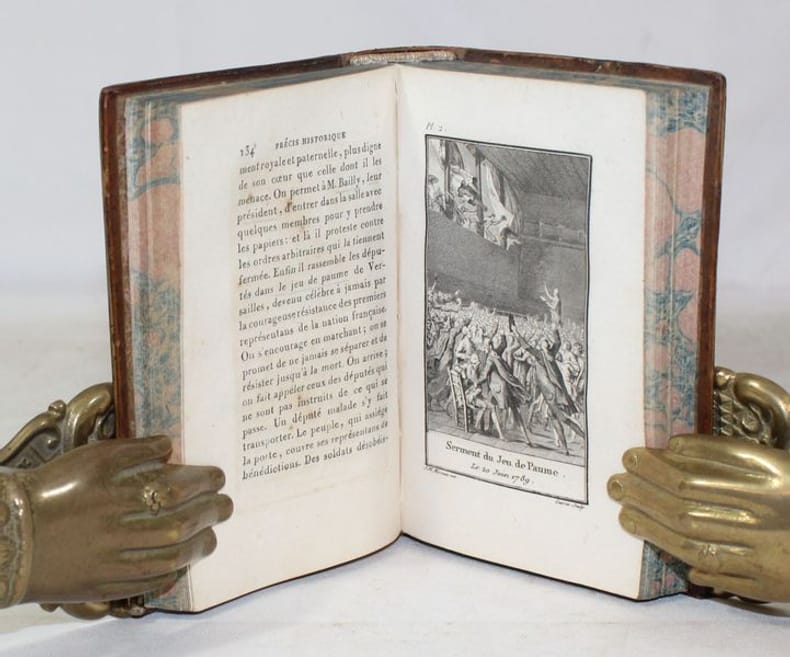 I. Rabaut. Almanach historique de la Révolution française pour 1792. II. Lacretelle. Assemblée législative. III et IV. Lacretelle. Convention nationale. V et VI. Directoire executif.Exemplaire composé de différents tirages de ce charmant ouvrage orné de 16 gravures h.-t., 6 figures de Moreau et 10 de Duplessis-Bertaux.Très bel exemplaire. - - VENTE PAR CORRESPONDANCE UNIQUEMENT - LIEN DE PAIEMENT, NOUS CONSULTER.