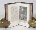 Paris Treuttel et Würtz, Onfroy, de l'imprimerie de Didot Jeun 1803 -in-12 plein-maroquin 2 volumes, reliure plein maroquin rouge in-douze (full morocco duodecimo) (14 x 9 cm), RELIURE D'EPOQUE, dos long (spine without raised band), décoré "or" et à froid (gilt and blind stamping decoration), titre et tomaison frappés "or" avec double roulette "or" de part et d'autre, double roulette "or" en place des nerfs et en tête et en pied, entre-nerfs à fleuron "cornemuse" à froid, plats décorés "or" d'un encadrement à 2 roulettes "or", filet "or" sur les coupes (gilt line on the cuts) et dentelle "or" intérieure, toutes tranches dorées (all edges gilt), marque-page en tissu vert (bookmark in tissue), gardes de soie bleu roi, Ouvrage orné de 4 vignettes hors-texte en noir de Bertaux gravées par Dupréel , (CXXXVI + 327) + (481 + XVII) pages, 1803 à Paris Treuttel et Würtz, Onfroy, de l'imprimerie de Didot Jeune Editeur,