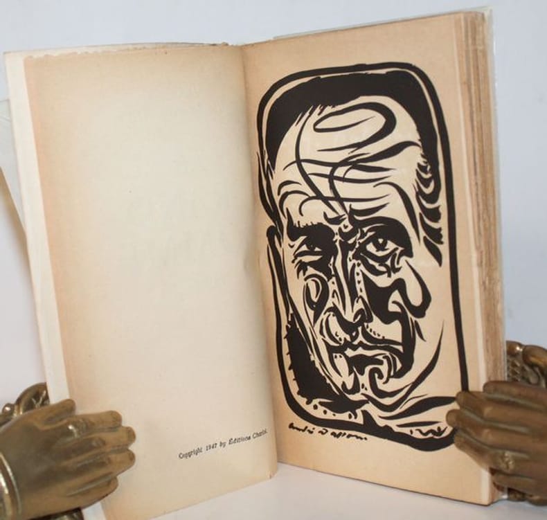 Paris, Charlot, 1947. In-12. Frontispice d'André Masson. Edition originale, non coupée (il n'y a pas eu de grand papier). Service de presse. Envoi autographe signé de l'auteur à G. Antonini. Broché blanc, imprimé noir et rouge, dos légèrement insolé.