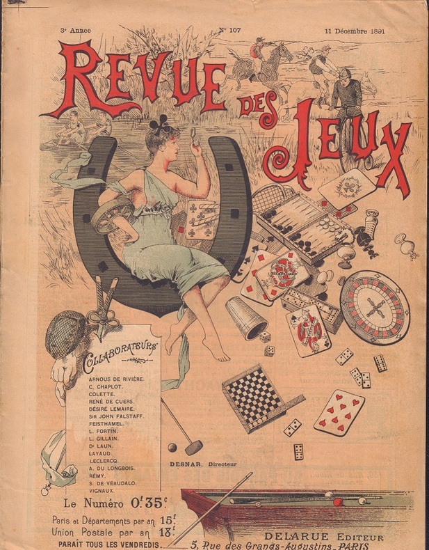 Paris. Delarue. 1890-1891. Fascicules in-f°(240 x 325 mm), brochés, couvertures illustrées couleurs, représentant toutes sortes de jeux, pagination variable (10 à 16 pages), impression sur 2 colonnes. Nous proposons les numéros 56, 57,58, 60, 73, 75, 76, 78, 93, 94, 97, 98, 99, 100, 101, 102 (couverture détachée),104, 106, 107, 109 et 110 soit 21 fascicules. Défauts d'usage, traces d'humidité, petits accrocs, qq. pages cornées. État convenable compte tenu de la fragilité et de l'âge de ces exemplaires. Rares.