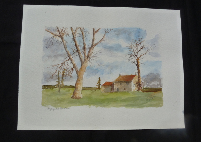 Aquarelle Aquarelle originale signée de Vaubourg (31 x 41 cm.), représentant un Paysage du Haulne composé d'arbres et d'une maison ; très bel état. Livraison a domicile (La Poste) ou en Mondial Relay sur simple demande.