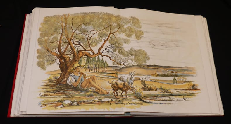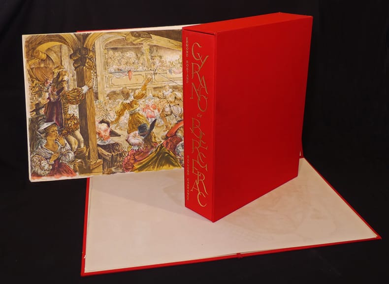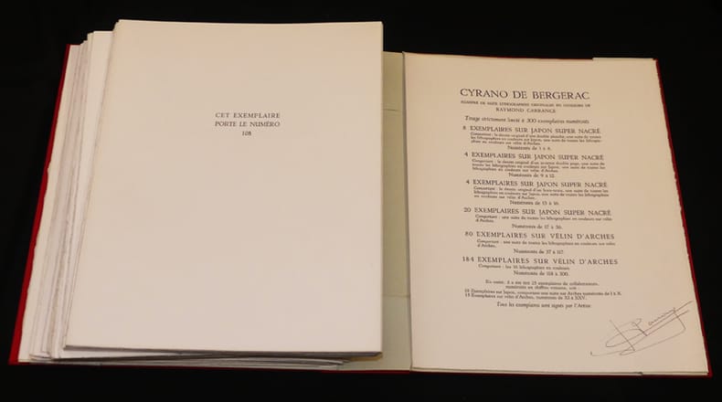 Editions du Grésivaudan Livre en feuillets 1971 In-folio en feuillets, sous chemise et emboîtage toilés rouge. Ouvrage illustré de 16 LITHOGRAPHIES ORIGINALES de Raymond Carrance. Tirage total à 325 exemplaires, le nôtre (n°108) est un des 80 exemplaires sur Vélin d'Arches, comportant une suite de toutes les lithographies en couleurs ; quelques petites traces sur la chemise de la suite des illustrations, par ailleurs très bel état. Livraison a domicile (La Poste) ou en Mondial Relay sur simple demande.