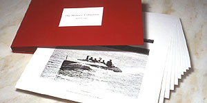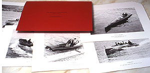 Yachting Heritage. 1991. Grande boîte oblongue (376 x 287 mm) cartonnage toilé rouge de l'éditeur contenant un fascicule de 40 pages non chiffrées avec des illustrations dans et hors texte, et un portefeuille contenant 10 Historic Prints of Photographs depicting Motorboat Racing Competition. Tirage limité à 500 exemplaires, celui-ci n° CII/CC. Petits défauts à la boîte sinon très bon état.