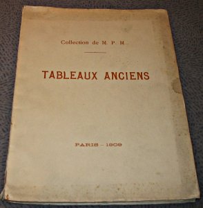 Georges Petit Catalogue 1909 In-folio broché, 55 pp., plus de très nombreuses planches reproduisant les oeuvres en vente, catalogue posthume de la collection de M. P. M..., contenant des tableaux de Goya, Greco, Guardi, Van Loo, Lorrain, Rubens, Velasquez, entre autres artistes ; quelques incidents en couverture, bon état. Livraison a domicile (La Poste) ou en Mondial Relay sur simple demande.