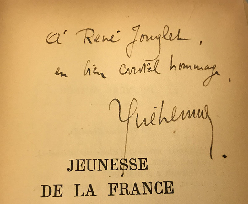 Grasset Les écrits Broché 1936 in-12 (12 x 18.7 cm), broché, 204 pages, non-coupé, envoi de l'auteur à René Jouglet, écrivain, à la fausse page de titre ; l'ouvrage est équipé d'un protège-livre, pliures au dos, bords frottés, quelques marques d'usage aux plats défraîchis, par ailleurs assez bel état. Livraison a domicile (La Poste) ou en Mondial Relay sur simple demande.